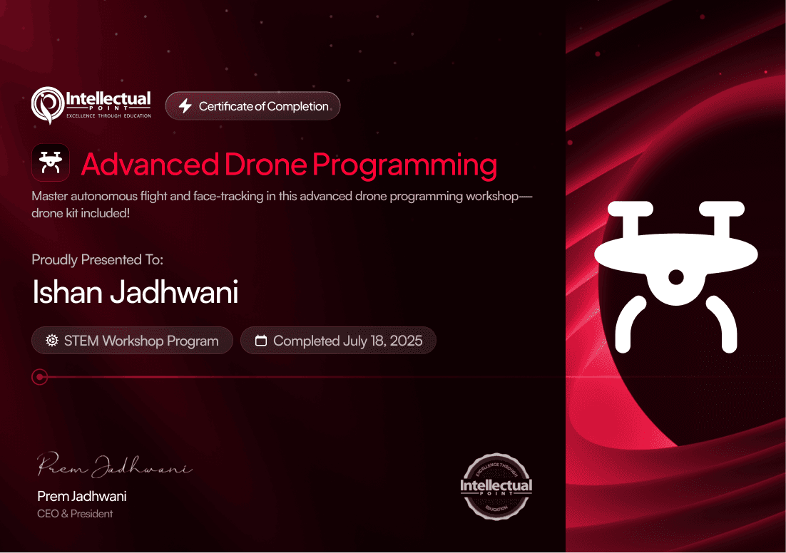 Take to the skies in this advanced drone programming workshop! You’ll learn to program drones for autonomous flight, face-tracking, and more. With hands-on coding and drone control, you’ll gain advanced skills in drone technology. Plus, you get to keep the drone kit for future flying adventures!